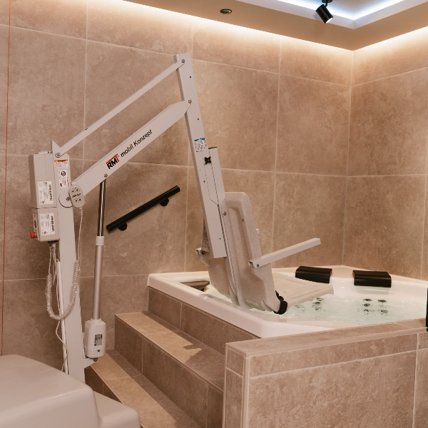 Unsere barrierefreien Suiten sind speziell für Deine Bedürfnisse gestaltet und ermöglichen Dir Wellness ohne Hindernisse. Breite Türen, ebenerdige Zugänge, ein großzügiger Dusch- und WC-Bereich sowie ein Pool-Lift sorgen dafür, dass Du Dich frei bewegen und rundum entspannen kannst. Genieße modernen Komfort, maximale Sicherheit und wohltuende Ruhe – ganz so, wie Du es verdienst.
